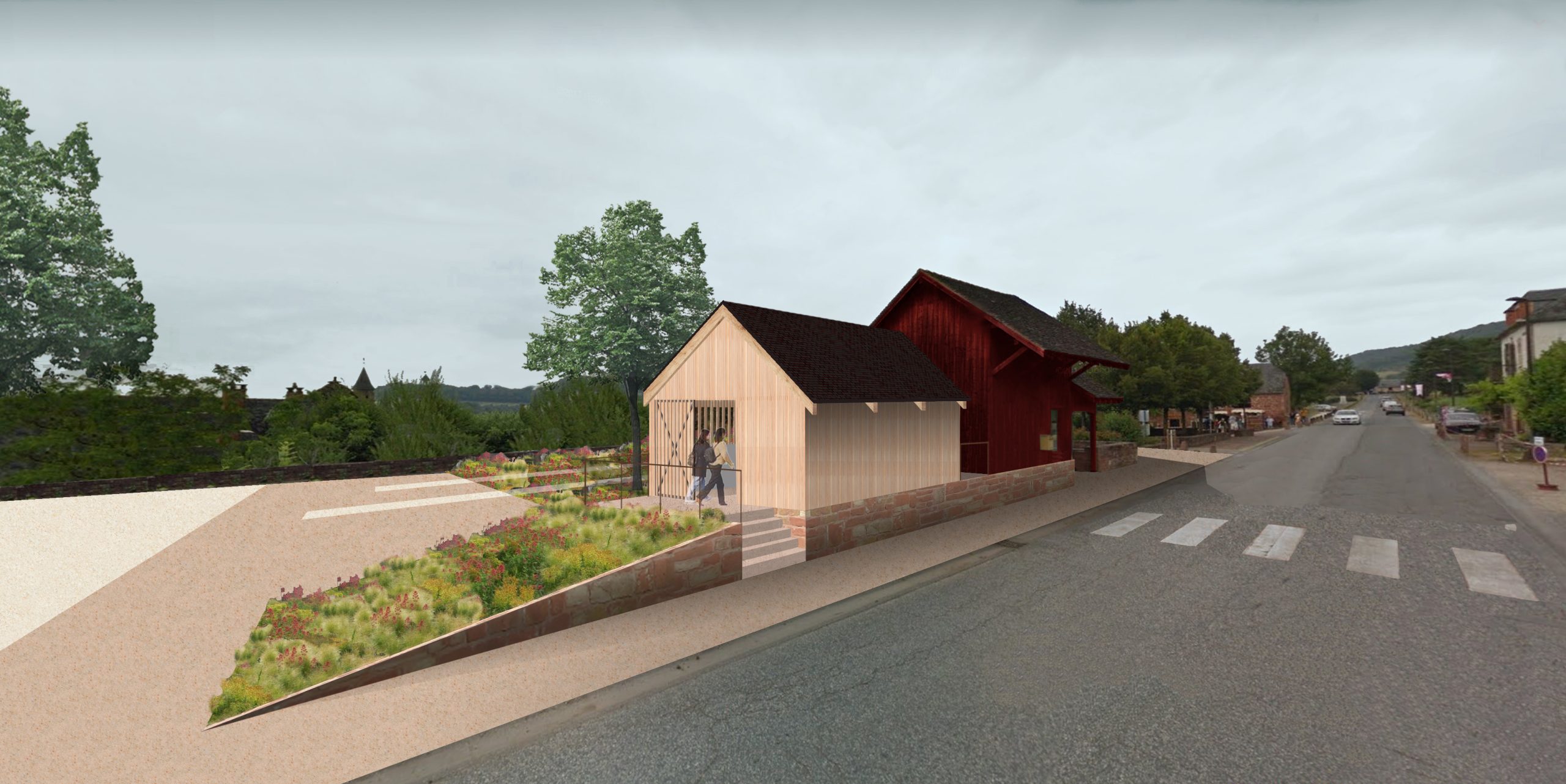 Le projet consiste à restaurer l’ancienne petite gare du transcorrézien et à créer une extension sur l’arrière dans le prolongement du volume de la gare afin d’y installer les toilettes publiques accessibles aux personnes à mobilité réduite. L’extension prend place à l’emplacement des anciens toilettes publiques, semi enterrées, et non accessibles.